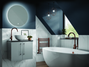 X Square twin wallmounted 4 drawer night blue Satin Vanity unit