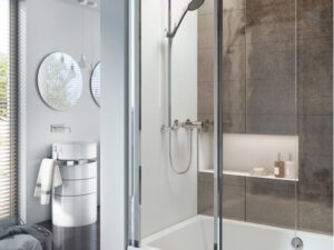 - Arysto by Merlyn Single Hinged Bath screen – like all products within this collection is beautifully designed and elegant. Our bath screens reach a height of 1500mm.