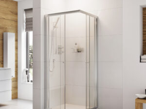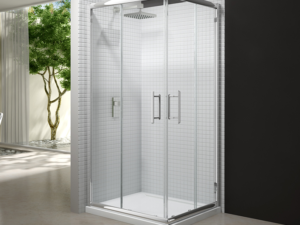 With a height of 1850mm, 6mm toughened glass, magnetic seals, easy fit frame, chrome handles and quick release bottom rollers for easy cleaning the Source Corner Door is the ultimate solution for any bathroom.