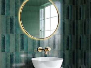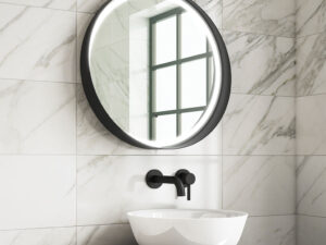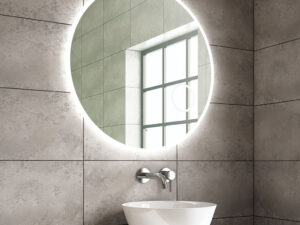 - Wall-mounted mirror with decorative strap and wall fitting support